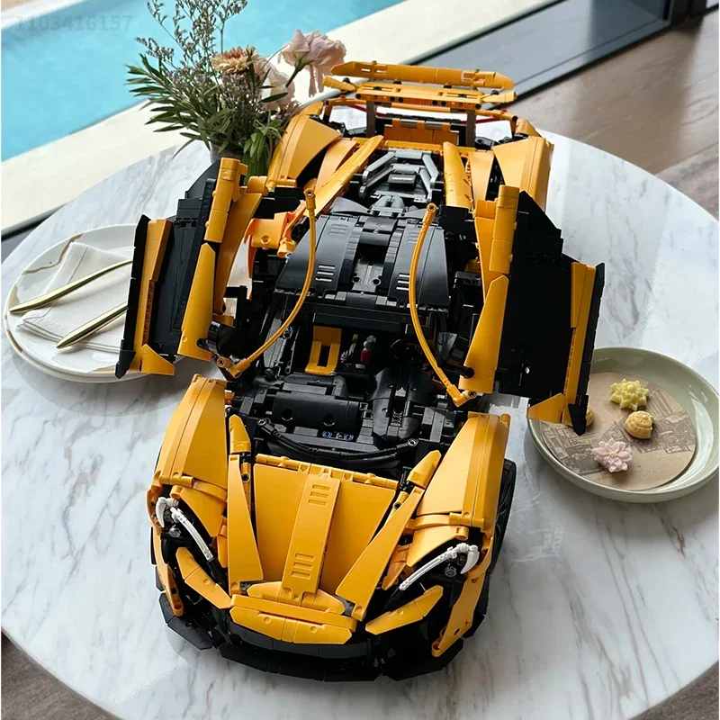 Voiture Sport Jaune Briques Construction Jouet Idéal Adultes Enfants Cadeau Noël Compatible