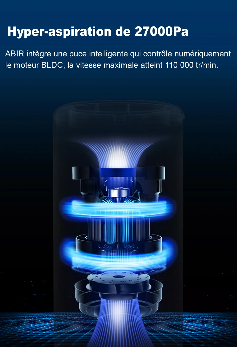 2.Une puce processeur intégré adapte intelligemment la vitesse du moteur en fonction de l'intensité de la poussière, assurant une efficacité énergétique optimale et prolongeant ainsi la durée de service.