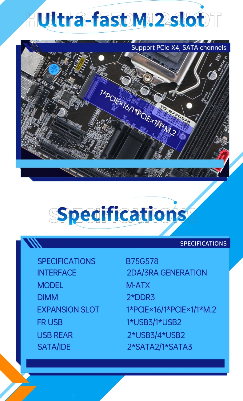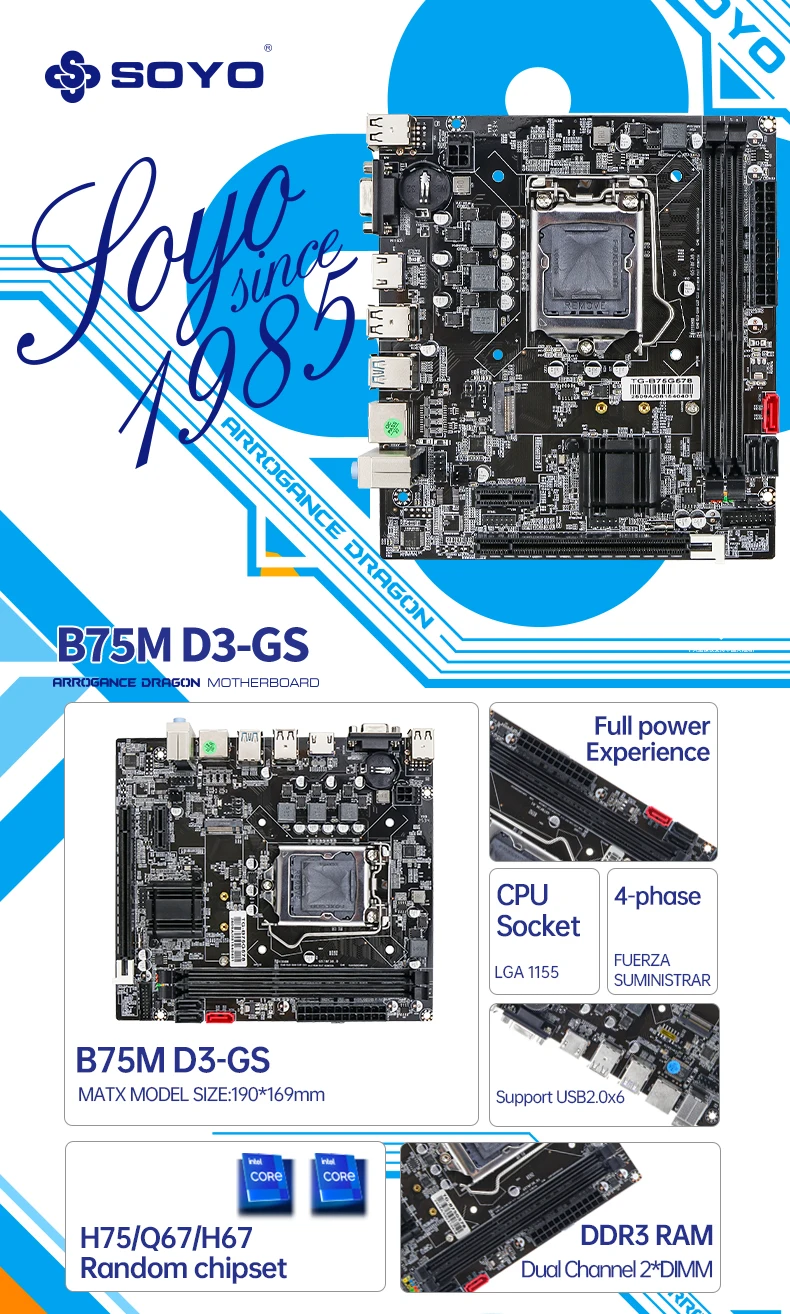 SOYO B75M carte mère M.2 NVME PCIEx16 DVI prend en charge la RAM DDR3 double canal Intel Core 2/3 Gen CPU LGA1155 pour ordinateur de jeu